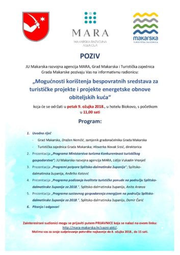 JU Makarska razvojna agencija MARA, u suradnji sa Gradom Makarska i Turističkom zajednicom grada Makarske organizira informativnu radionicu: