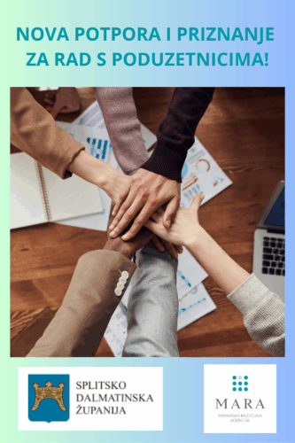 Zahvaljujemo se Splitsko – dalmatinskoj županiji što je prepoznala aktivnosti Makarske razvojne agencije MARA kao poduzetničke potporne institucije koje pruža svojim korisnicima, prvenstveno poduzetnicima početnicima. Radi se o organiziranju radionica u sklopu Male poduzetničke akademije, savjetovanja i prijave za program Samozapošljavanja, prijave na SDŽ Program potpore osnivanju i razvoju malog gospodarstva, kao i za ostala savjetovanja prema poduzetnicima početnicima.